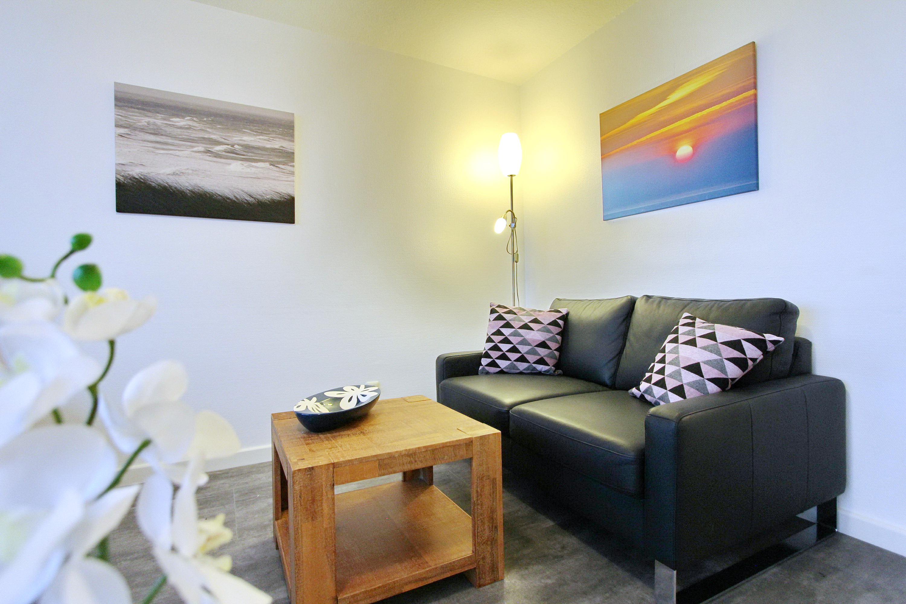 Gepflegte 1-Zimmer-Wohnung im Herzen von Westerland - sie befindet sich in der 13. Etage im Kurzentrum von Westerland mit herrlichem Weitblick über die City bis hin zum Wattenmeer. Auf dem vorgelagertem Ost-Balkon können Sie ungehindert den Sonnenaufgang genießen. Das Schwimmbad Sylter Welle, der Hauptstrand und die beiden Fußgängerzonen befinden sich in unmittelbarer Nähe. Der kombinierte Wohn-/Schlafraum verfügt über 2 Einzel-Schrankbetten, 2 gemütlichen Sesseln und einem Essplatz mit 2 Stühlen. In der, im Vorflur befindlichen, Küche finden Sie eine Geschirrspülmaschine, ein Ceran-Kochfeld mit 2 Platten, eine Mikrowelle und ein Kühlschrank mit Gefrierfach. Helles Duschbad/WC mit Handtuchheizkörper. Nichtraucherwohnung. Haustiere nicht gestattet. Wohnungsgröße ca. 30 m². Ein Hotspot im Haus (WEG Haus Metropol - Passwortfrei - ohne Gewähr) ermöglicht Ihnen einen kabellosen und kostenfreien Zugang zum Internet.