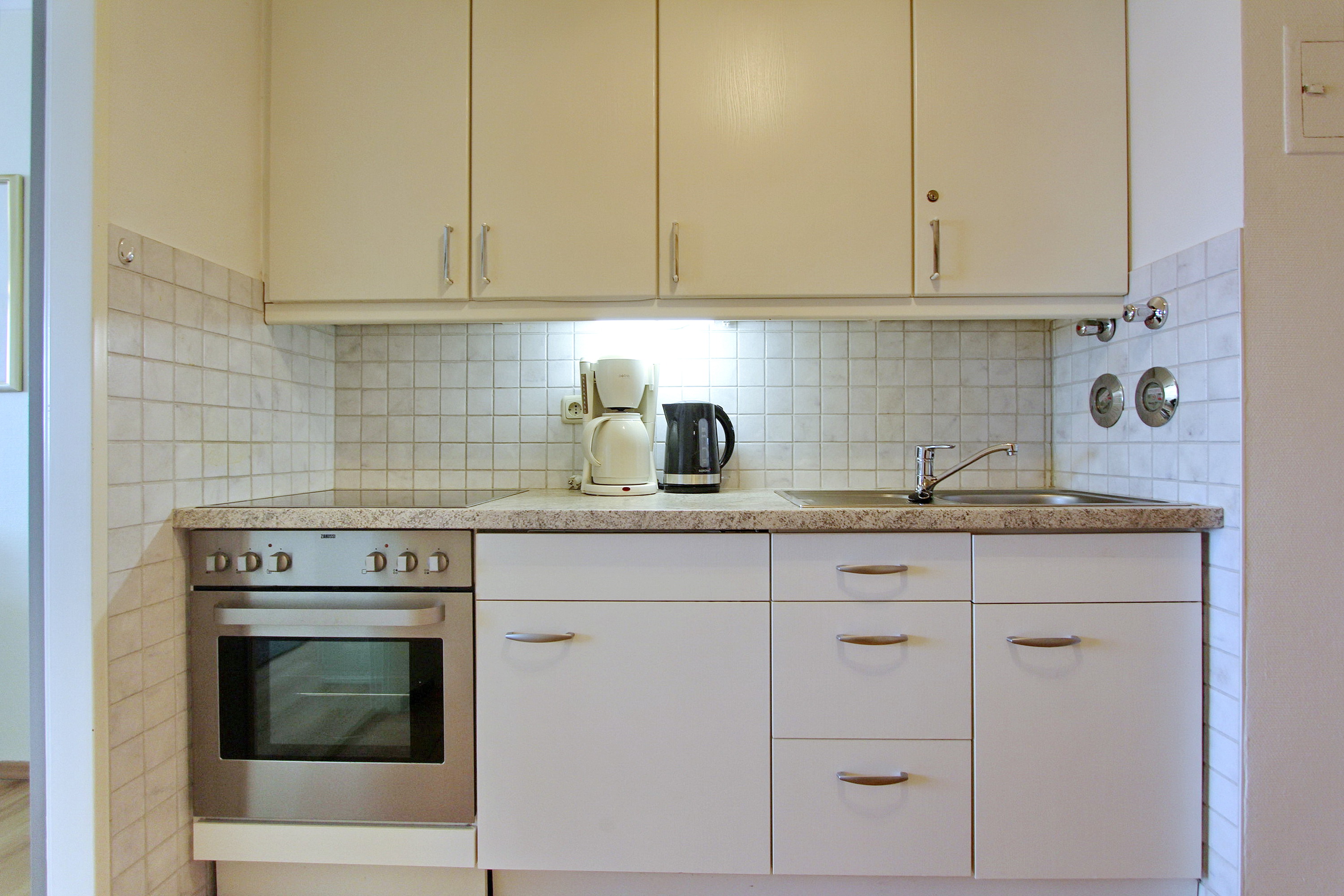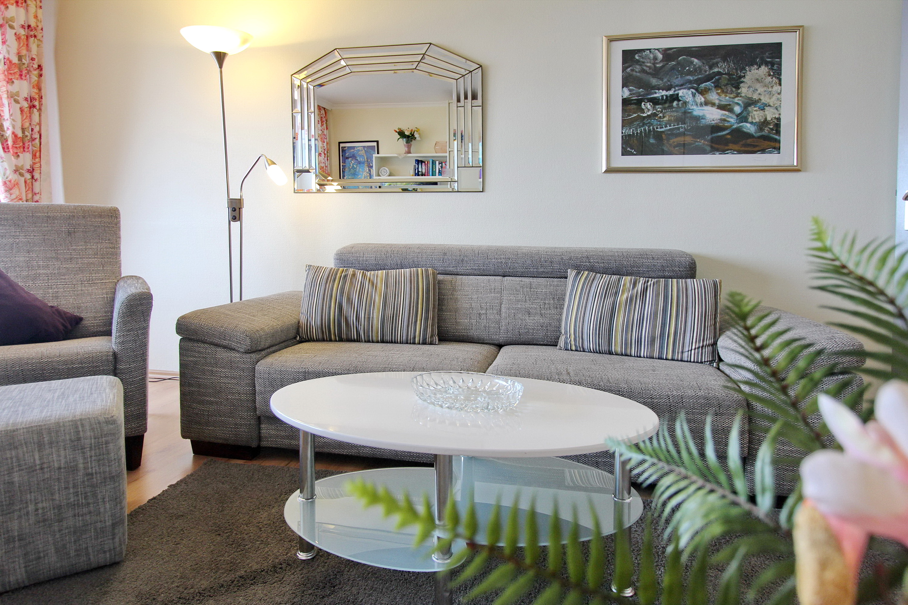 Schöne 1-Zimmer- Wohnung im Haus am Meer in der 4. Etage mit herrlichem Blick auf die Nordsee. Von der vorgelagerten Loggia haben Sie einen tollen Blick auf die Promenade und können die Sonnenuntergänge genießen. Der kombinierte Wohn-/Schlafraum verfügt über 2 Einzelschrankbetten, einer gemütlichen Couchgarnitur mit Sessel und einem Essplatz mit zwei Stühlen am Fenster. Die kleine Küchenzeile im Flur ist ausgestattet mit einem Cerankochfeld mit 4 Platten, einem Backofen und einem Kühlschrank. Modernes Duschbad/WC. Nichtraucherwohnung. Haustiere nicht gestattet. Kostenfreier W-Lan-Hotspot (WEG Haus am Meer - Passwortfrei - ohne Gewähr). Wohnungsgröße 34 m².